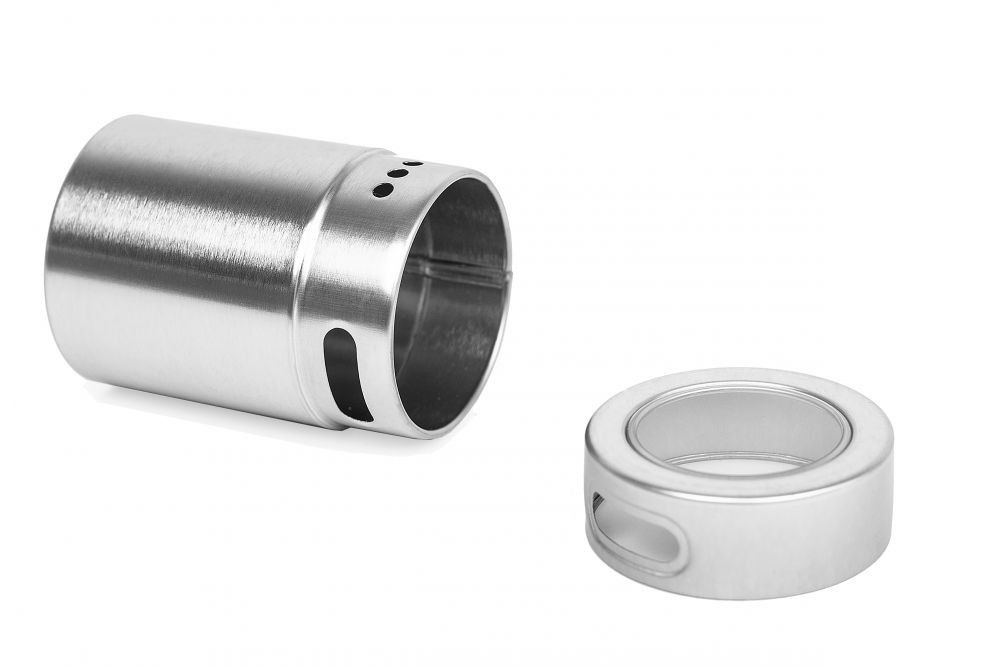 Kräuterdöschen mit Innendeckel, Weißblech, silber