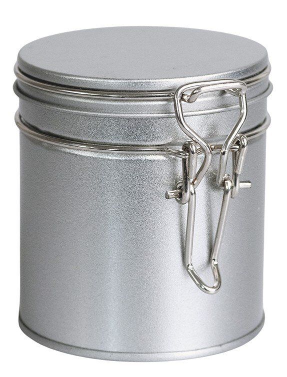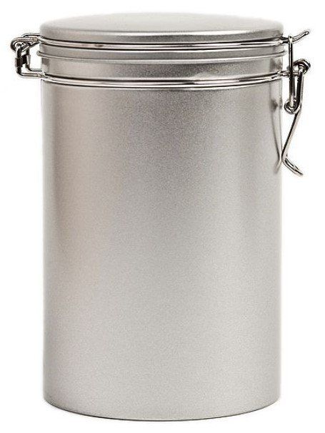 Kaffeedose mit Bügelverschluss, Weißblech, silber