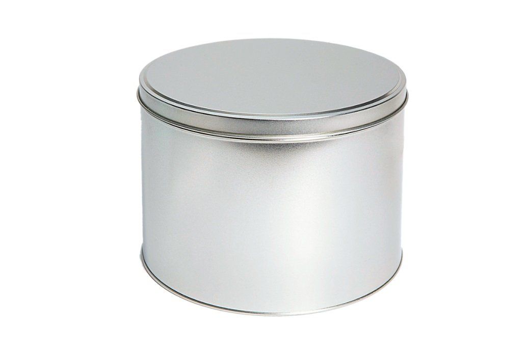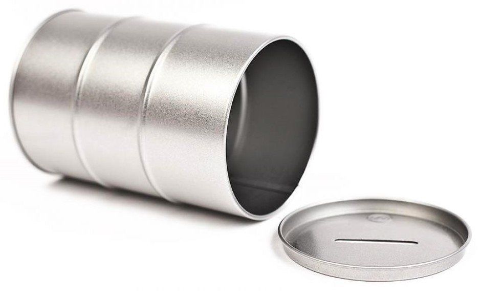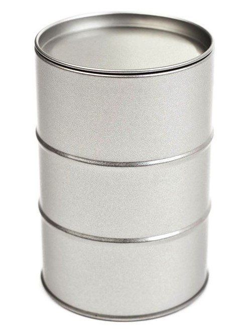 Ölfass mit Eindrückdeckel, Weißblech, silber