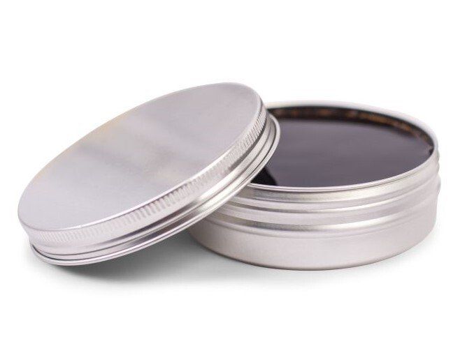 Runddöschen mit gewölbtem Deckel und Innendeckel, Weißblech, silber. Die Lackierung ist auch hier lebensmittelecht