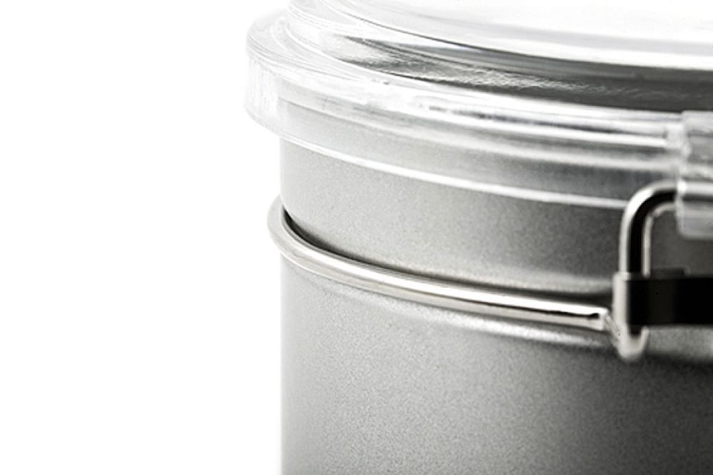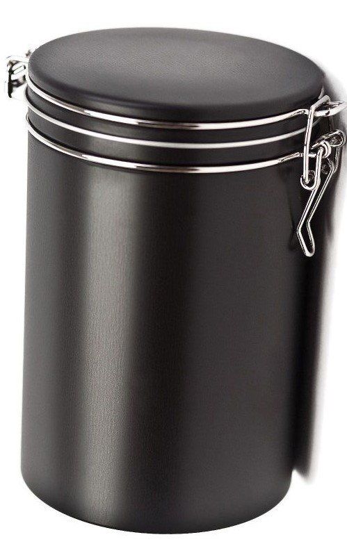 Kaffeedose mit Bügelverschluss, Weißblech, mattschwarz lackiert