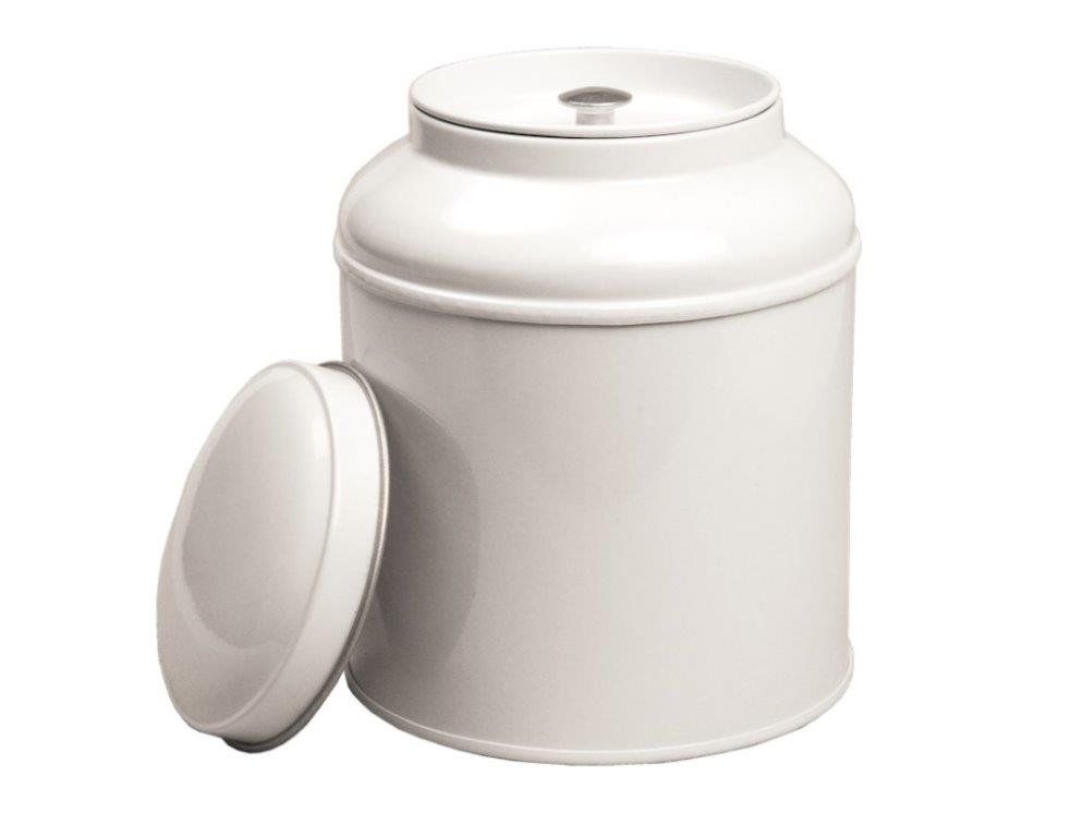 Schraubdeckeldose mit Deckelfenster, Weißblech, weiß lackiert