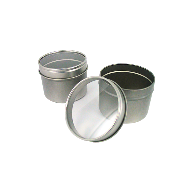 Schraubdeckeldöschen mit Klarsichtdeckel, Weißblech, silber