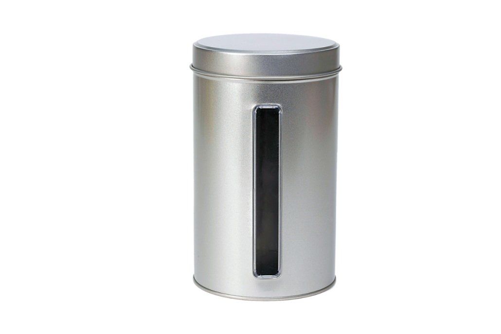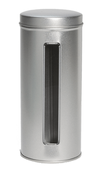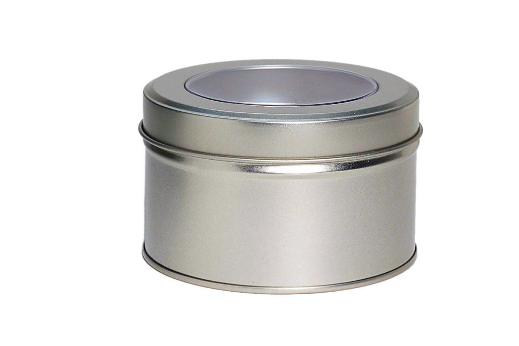 Schraubdeckeldose mit Deckelfenster, Weißblech, silber